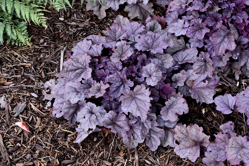 Pink Panther Coral Bells features dainty spikes of rose bell-shaped flowers with pink overtones rising above the foliage in mid summer. Its attractive crinkled lobed leaves emerge rose in spring, turning plum purple in color with distinctive dark gray veins and tinges of silver the rest of the year.